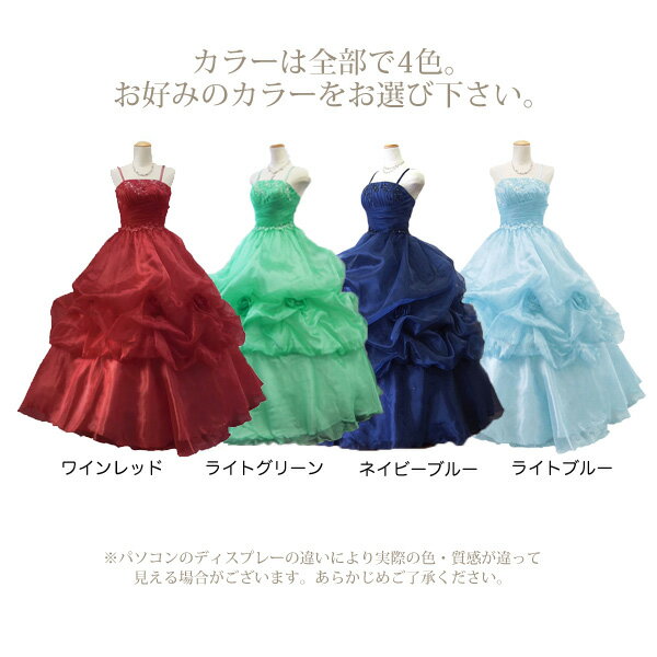サイズの測り方は こちらから カラー ライトグリーン/ワインレッド/ネイビーブルー/ライトブルー パニエ着用 画像は3段パニエを使用 パニエコーナーはこちら 素材 ポリエステル 備考・取り扱い *サイズ表記について。