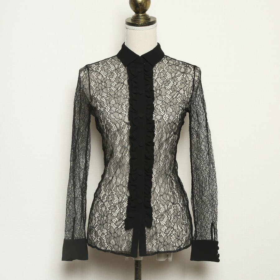 ◆[USED/中古]◆送料無料◆【美品】SAINT LAURENT サンローラン 2013 エディスリマン フリルレースブラウス ブラック シースルー 36【RCP】【中古】
