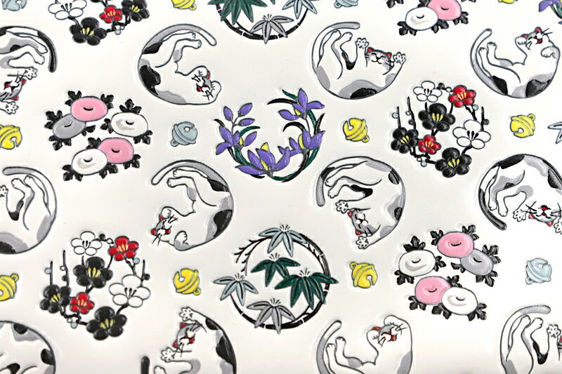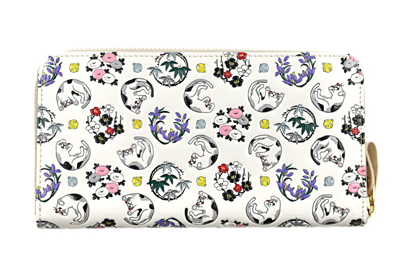 財布 長財布 ラウンド長財布 ラウンド財布 ラウンド型 白 猫 革 文庫革 天然皮革 浅草文庫 友禅染 型友禅 手描き友禅 江戸小紋 浅草 日本製 上品 エレガント カジュアル オシャレ 可愛い 大人可愛い 大人 シック 上品 粋 高級 結婚式 入学式 卒業式 No.88-1413