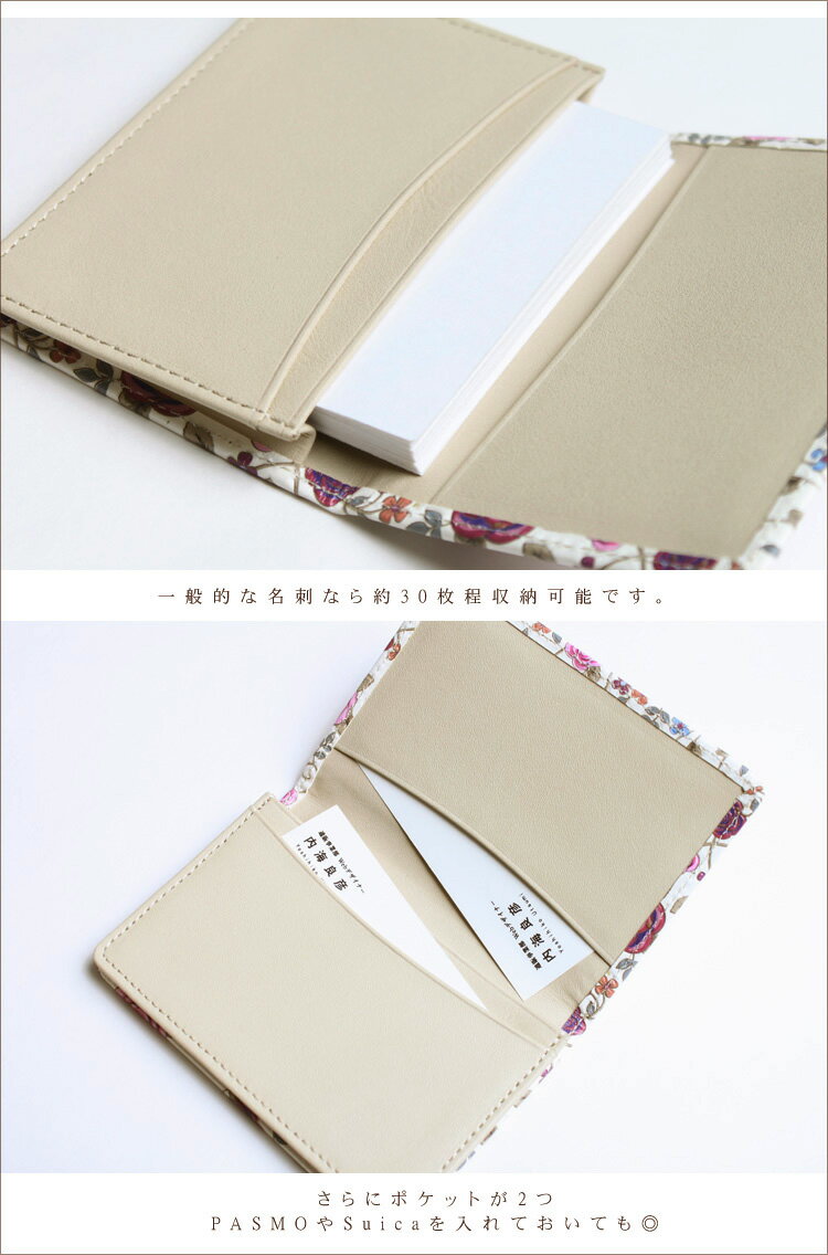 商品名 「浅草文庫」 カードケース 名刺入れ 薔薇 バラ 柄 サイズ 幅約11cm、高さ約8cm、厚み約1.5cm 素材 表側:文庫革(牛革)内側:牛革、コットン 収納 メイン収納:1室(名刺約30から40枚収納可)、ポケット2室(それぞれカード1から2枚収納可) 備考 ※専用木箱付。