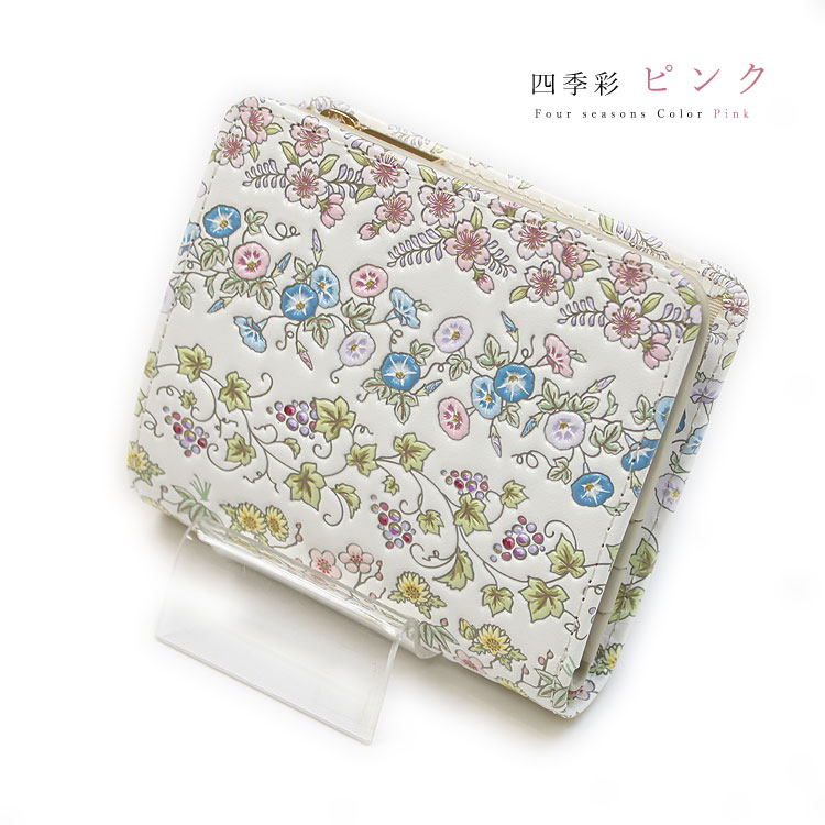 【ポイント5倍・5%OFFクーポン有】 【 浅草文庫 】 友禅染 二つ折り 財布 L字ファスナー 四季彩 しきさい 柄 江戸小紋 サイフ 2つ折り ミニ財布 浅草 文庫革 送料無料 レディース ギフト プレゼント
