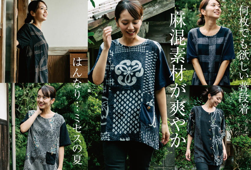 江戸小紋調プリントがおしゃれな 綿 レーヨン 麻混 カットソー 夏の普段着に人気です インド製 (ご注意)インド綿ですので、染めムラ、織りムラやネップ(糸玉)などはございます。