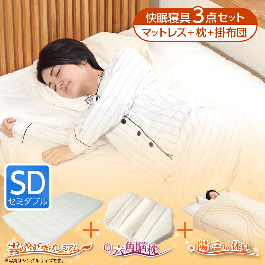 「雲のやすらぎプレミアム」敷布団(セミダブルサイズ)&六角脳枕&陽だまりの休息掛け布団の3点セット 送料無料 【itty202003】