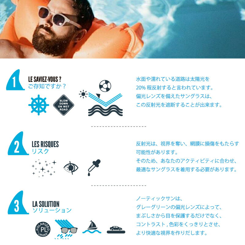 IZIPIZI SUN NAUTIC 偏光レンズ 偏光サングラス 水面や濡れている道路は太陽光を20%程、反射すると言われています。